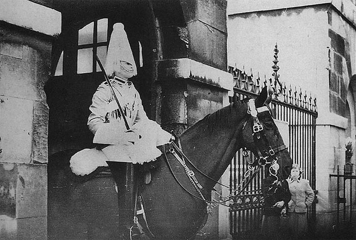 Пешие и конные гвардейцы в карауле. Англия, Лондон. 1956 г.
