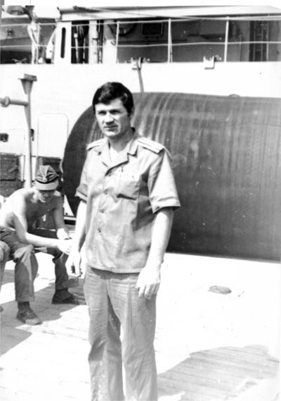 Всплыли в позиционное положение, то есть одна наша рубка торчит из-под воды. Ночь, штиль, ясная видимость... Вдруг акустик обнаружил шум винтов противолодочного корабля. Срочно начали погружаться. Шум винтов и работающих машин эсминца оглушил экипаж. По корпусу застучал «горох» - охотившийся на нас корабль включил ГАС в активном режиме. Казалось, будто американский корабль провел граблями по нашим головам. Иначе говоря, от гибели нас отделяли каких-то метра полтора.